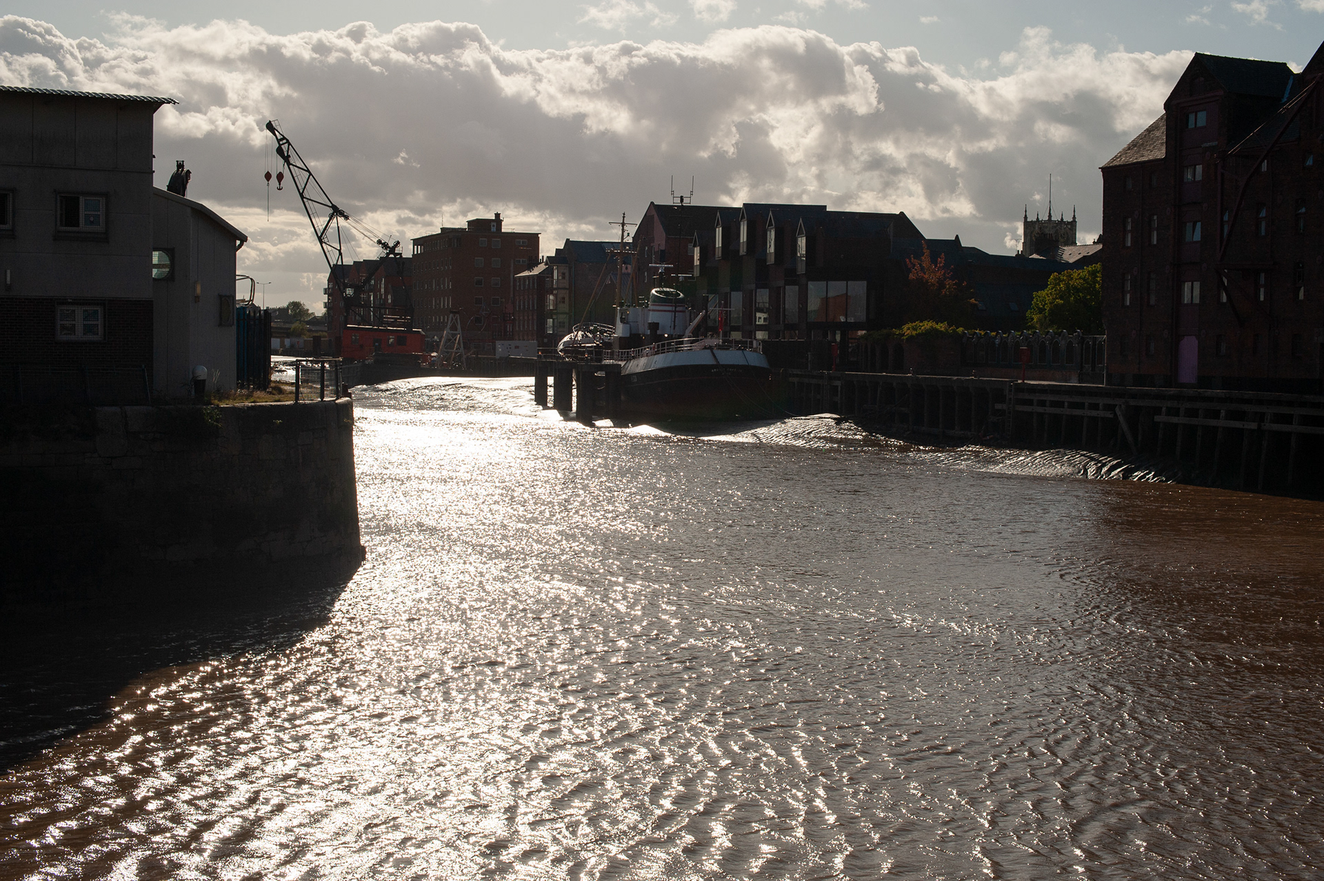 Ref: Whitby_19800811_0008. A fisherman guides his coble into Whitby Harbour in the summer sunshine. Fish Quay, Whitby, North Yorkshire, UK, 1980. I took this picture when I was a photography student, probably on my Olympus OM1 with a 135mm lens. I processed the Agfachrome transparency film myself back at college in Leeds. We have it a lot easier these days.